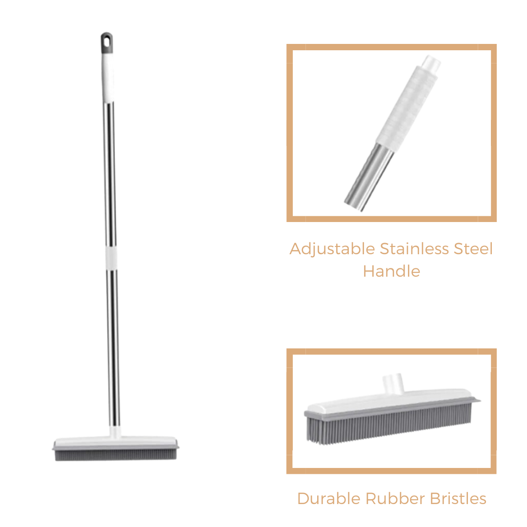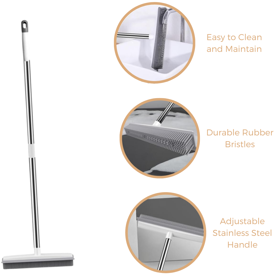 The Ultimate Hair-Free Broom is designed with durable rubber bristles that effectively collect hair and dirt without damaging your floors. Plus, it features an adjustable stainless steel handle that fits your needs, offering you unmatched flexibility. From hardwoods to carpets, cleaning has never been easier.
